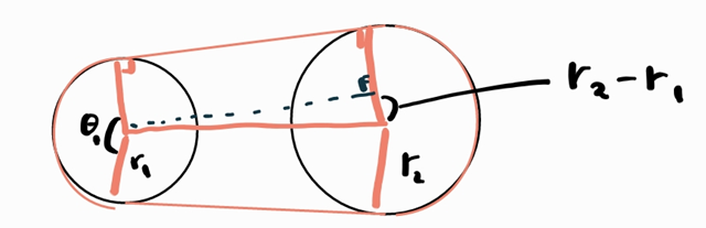 double d = 2.0*sqrt(dx*dx+dy*dy-dr*dr) + 1.0*r1*theta + 1.0*r2*(2*pi-theta);